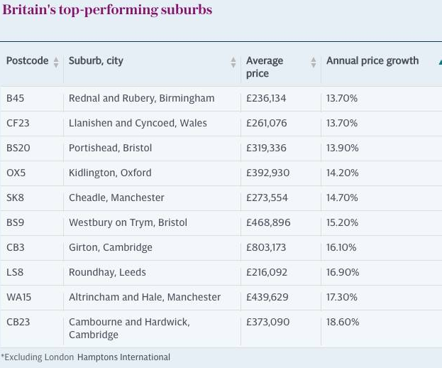 近几年来很多人士选择投资英国郊区,那么房价增幅的郊区都有哪些呢?