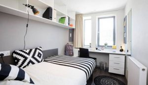 学校宿舍大体分为两种:Catered和Self-catered。Catered会提供早晚两餐,Self-catered又分为三小种:Studio(自带卫生间,自带厨房),En-suit(自带卫生间,公用厨房),Standard(公用卫生间,公用厨房)。