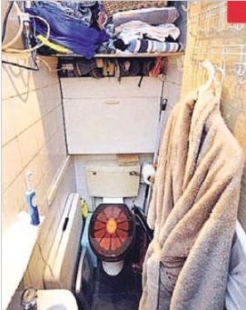 这套公寓是在上世纪80年代由一间摆放清洁用具的储藏室改装而成的,虽然它长度只有3.35米,宽度只有1.68米,但仍然被隔成了两个房间!