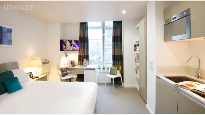 【英国房产网】  公寓提供Studio房型供学生选择,根据房间大小,风景,楼层有不同价格。全部房间均配有品位精致的家具装修,且都配有独卫,装配齐全的厨房,250Mb宽带和WIFI,电视。公寓内有健身房、公共休闲室、游戏厅等公共设施。定期会举办各种娱乐活动促进学生交流。