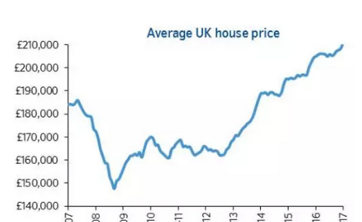 而长期来看,最近几年英国的平均房价的确保持了一个势头良好的增长,在经历了去年年底的一些微调之后,现在又回到了平稳增长的阶段: