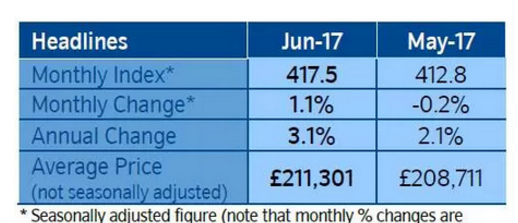 此次增长也同样推动平均英国房价年增长率达到3.1%,相比5月的2.1%加快了1个百分点,达到211,201英镑。